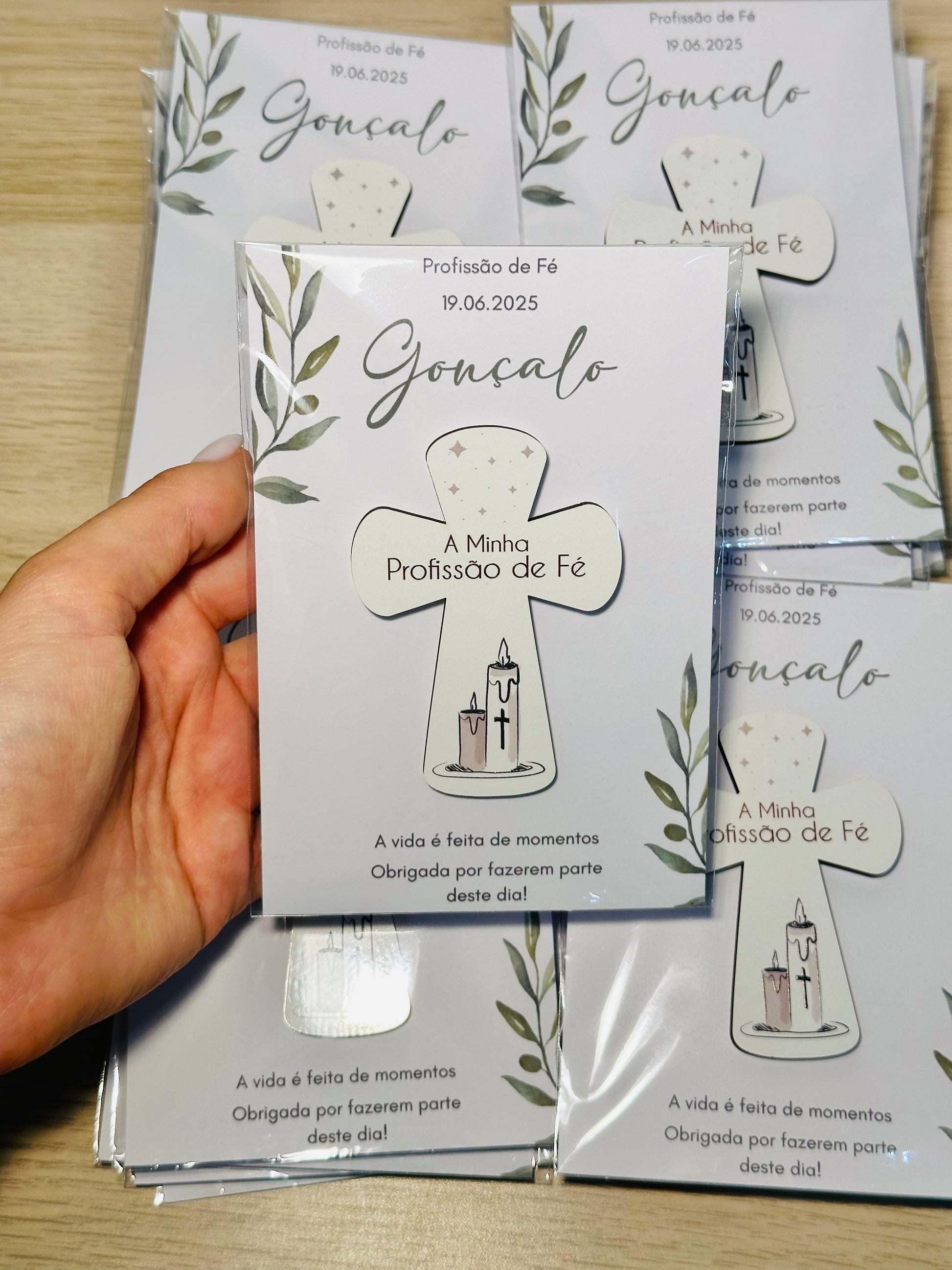 Uma lembrança simbólica em formato de cruz para assinalar o Crisma. Um gesto bonito e significativo para oferecer aos convidados.