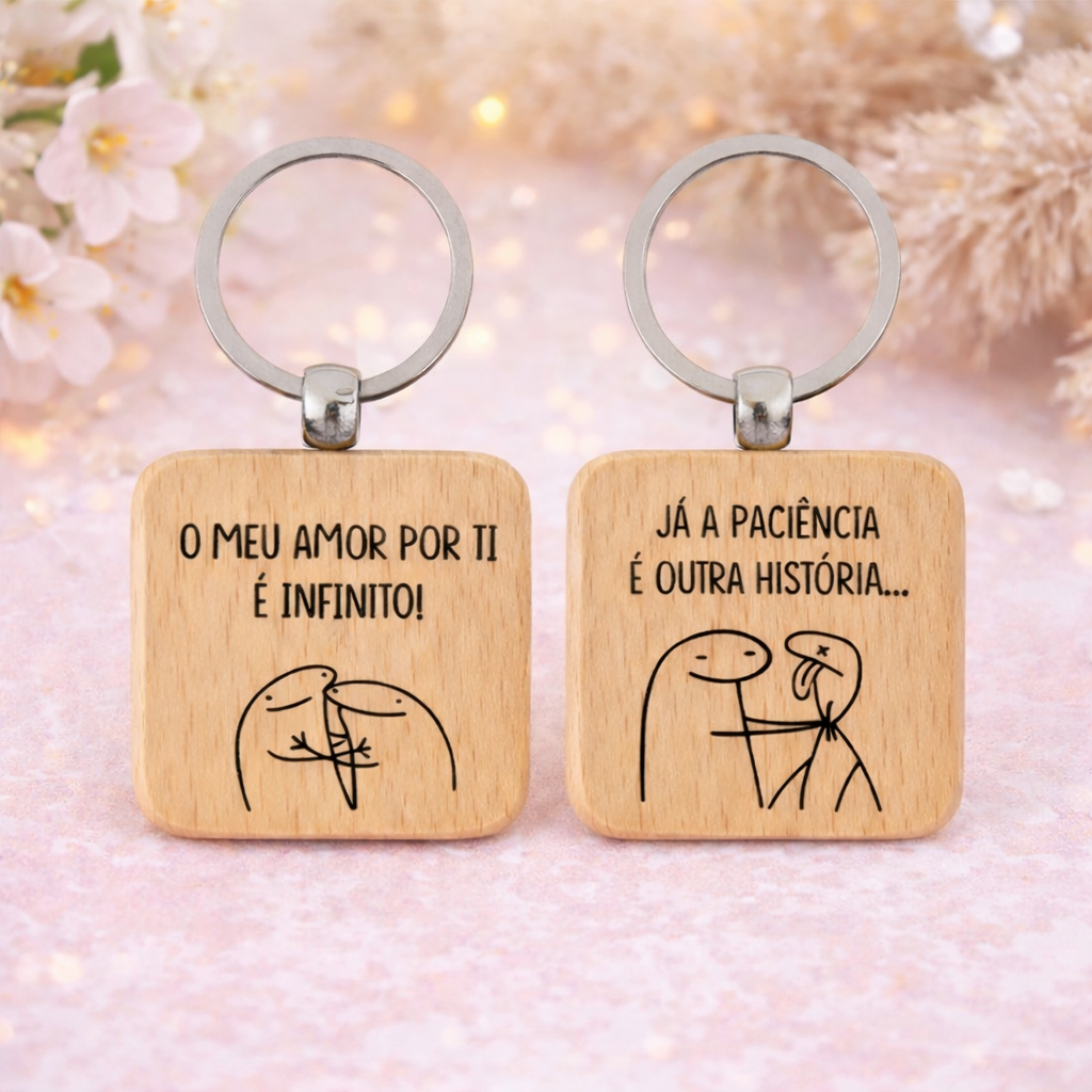 Um porta-chaves em madeira cheio de humor e carinho, perfeito para oferecer a quem nos faz sorrir todos os dias.
