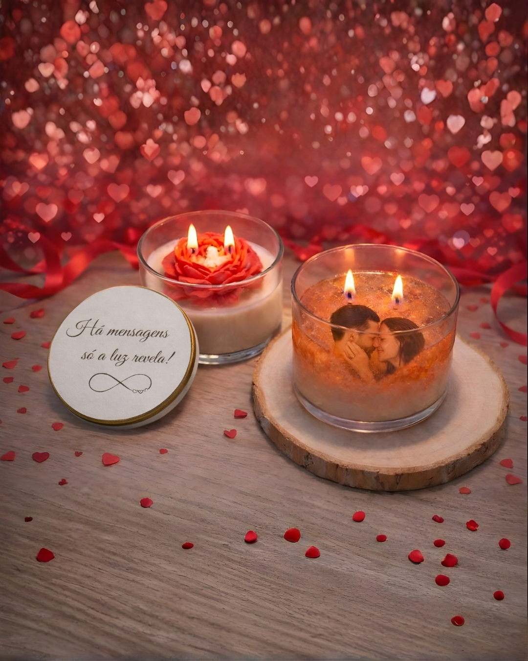 Surpreenda quem ama com uma vela única, feita à mão, que transforma um simples momento em algo inesquecível. Esta vela pode ser personalizada com uma fotografia e uma frase especial, tornando cada presente verdadeiramente único.